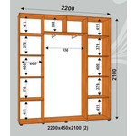 Шкаф-купе ширина 2200 (наполнение 2) фасады зеркало/ЛДСП