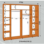 Шкаф-купе ширина 2700 (наполнение 2) фасады зеркало/ЛДСП