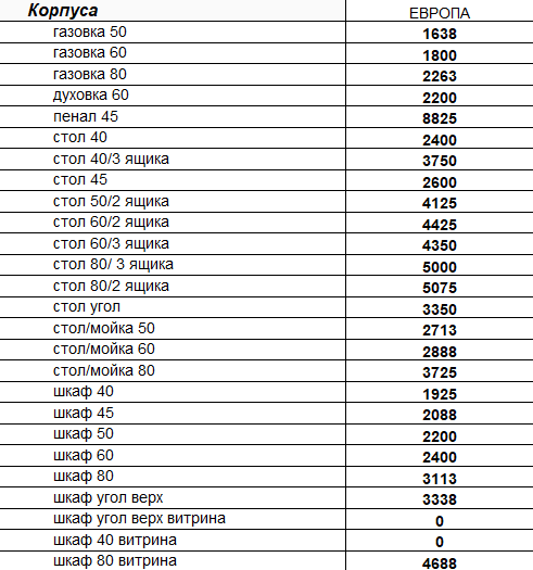 Модули 600, 800 применяются как шкафы под глухие створки, так и под стеклостворки. Столы 50, 60 и 80 также используются как мойки.