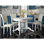Изысканный и элегантный обеденный стол «Верона 2» — это благородная роскошь эпохи рококо. Обтекаемые формы, кокетливый орнамент, опоры с причудливыми изгибами и соединяющая их фигурная перекладина не оставят равнодушным ценителей прекрасного. Белый монохромный массив словно яркое пятно в интерьере: привлекает внимание и вызывает восхищение гостей и обитателей дома.